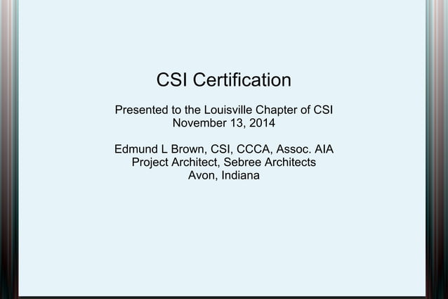 Spring CSI Certification Exams January 18 2018 Indianapolis
