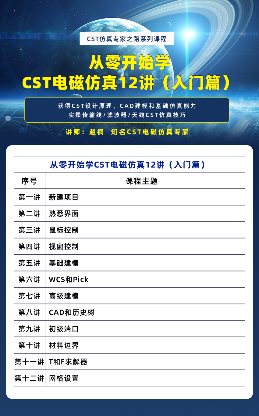 CST Studio Suite 零基础 CST电磁仿真12讲(入门篇) 电磁基础 寄生参数 射频微波 电源 电路 仿真秀视频课程