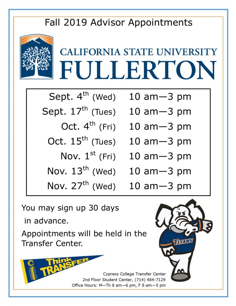 CSU Fullerton Advisor Appointments Cypress College