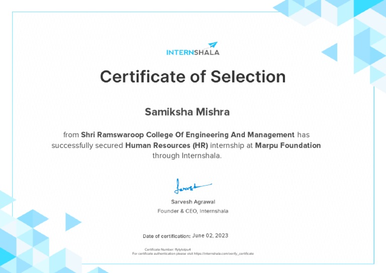 Certificate of Internship ABHINAV MISHRA HR InternsElite PDF