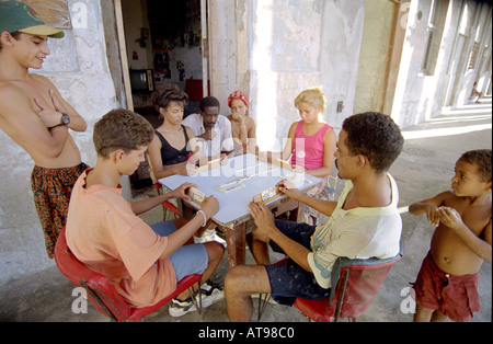 Cubans playing dominos outside their house in Havana Cuba Stock Photo