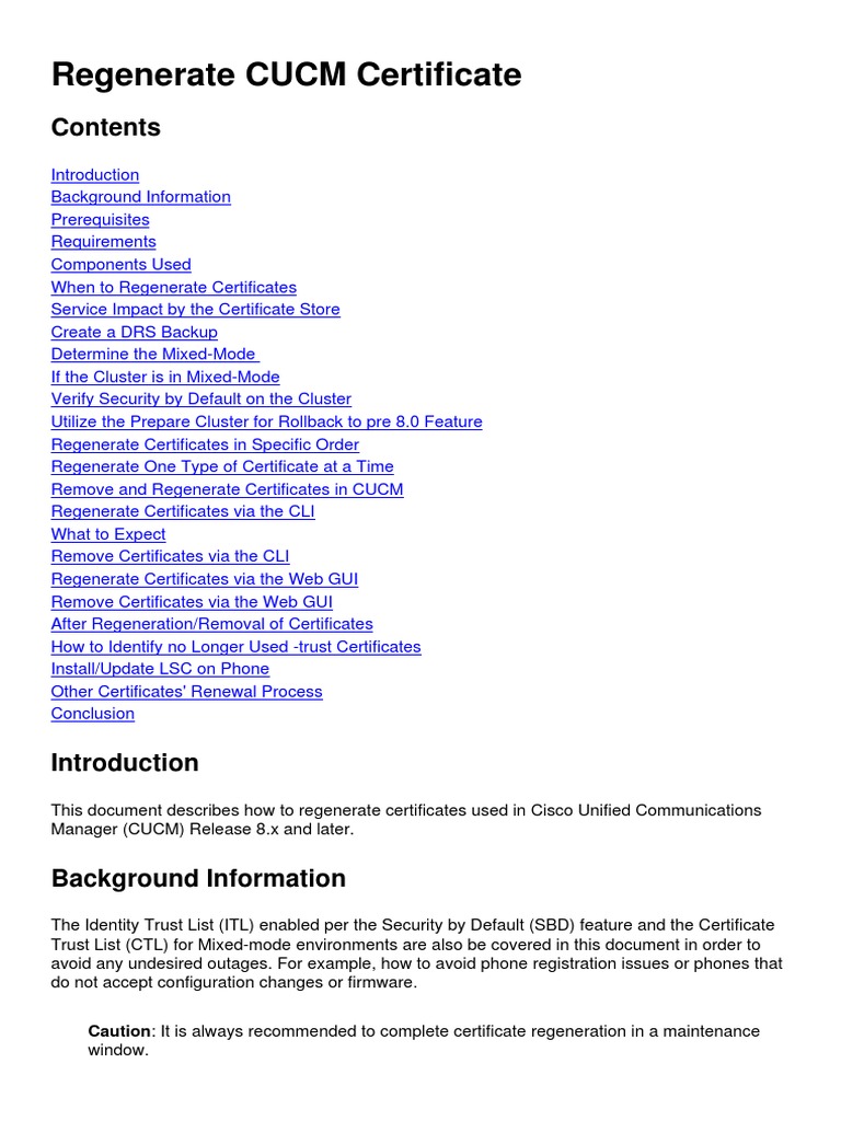 Regenerate CUCM Certificate Download Free PDF Public Key
