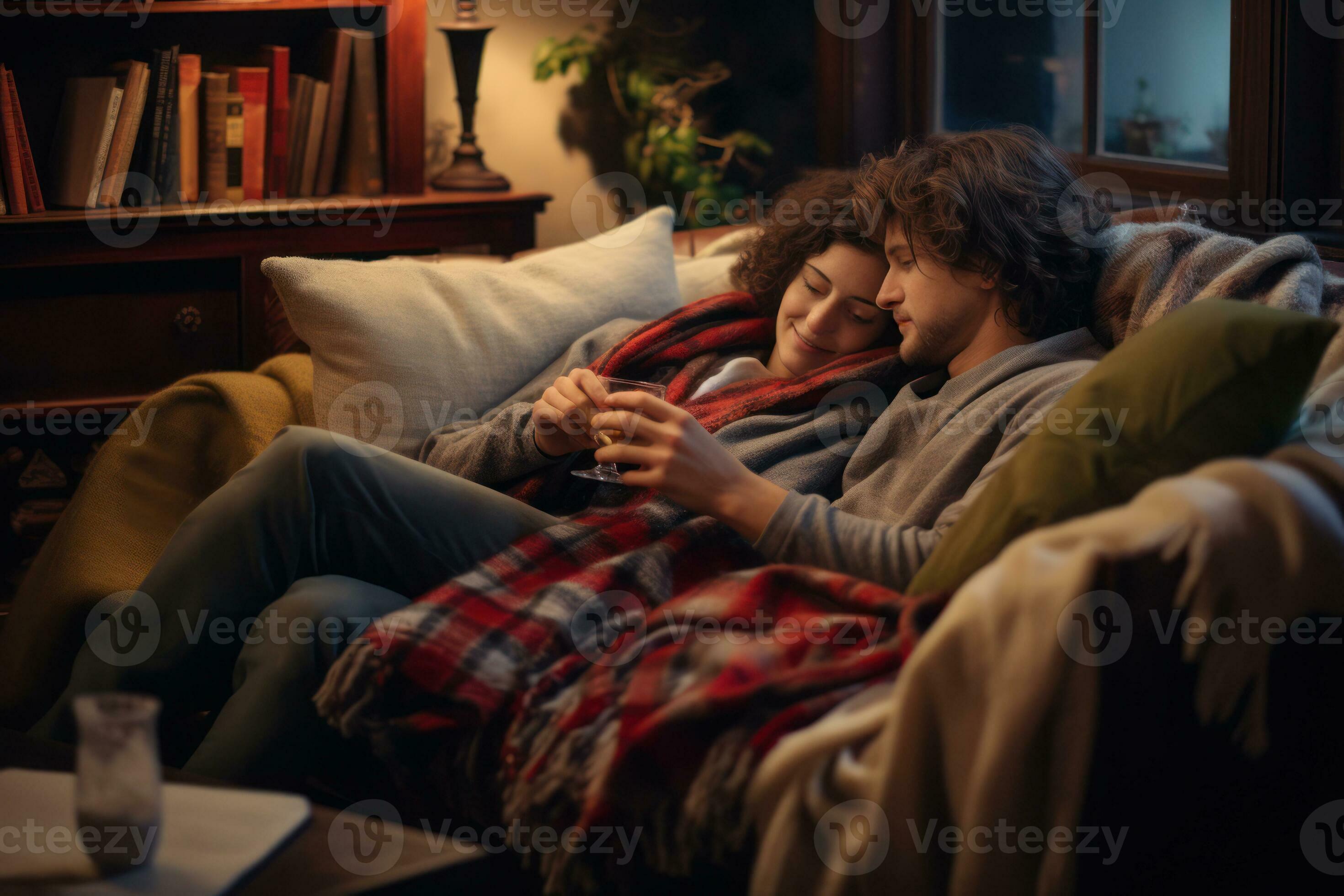 Premium AI Image A couple cuddled up in bed smiling and looking at