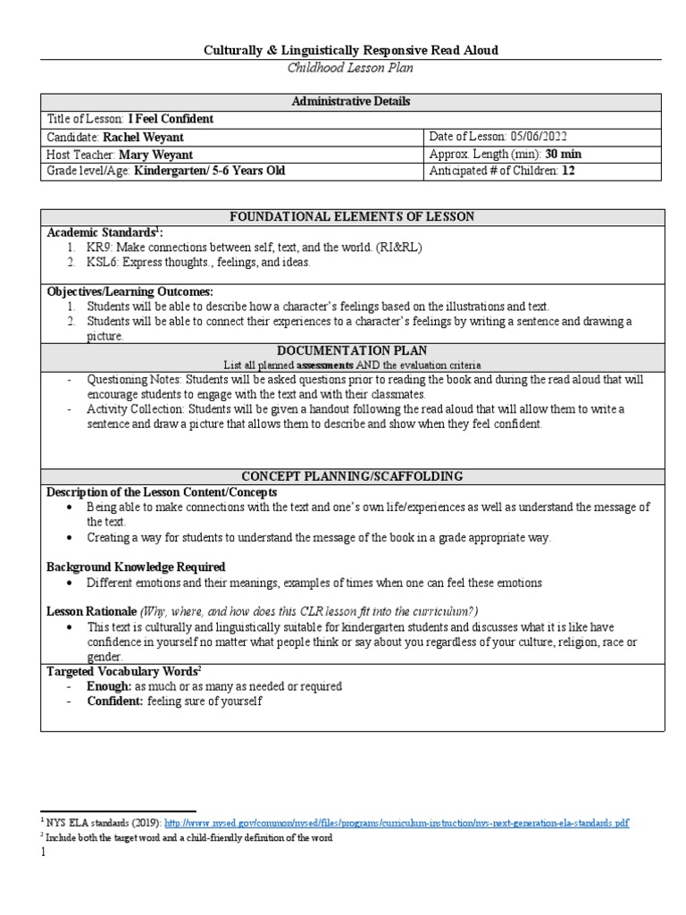 CLR READ ALOUD LESSON TEMPLATE docx Culturally Linguistically