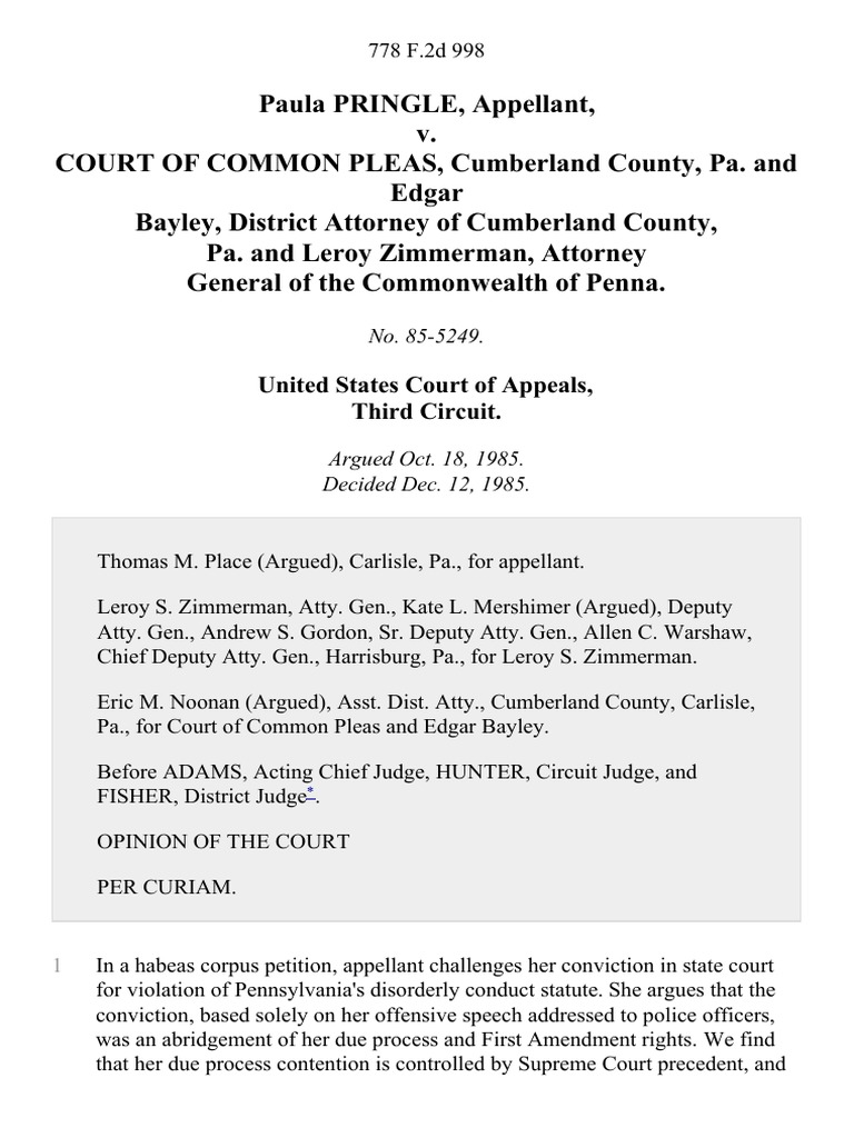 Paula Pringle v Court of Common Pleas Cumberland County Pa And