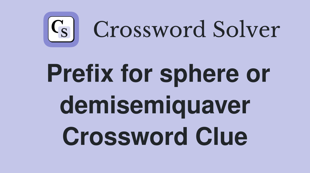 Prefix for sphere or demisemiquaver Crossword Clue Answers