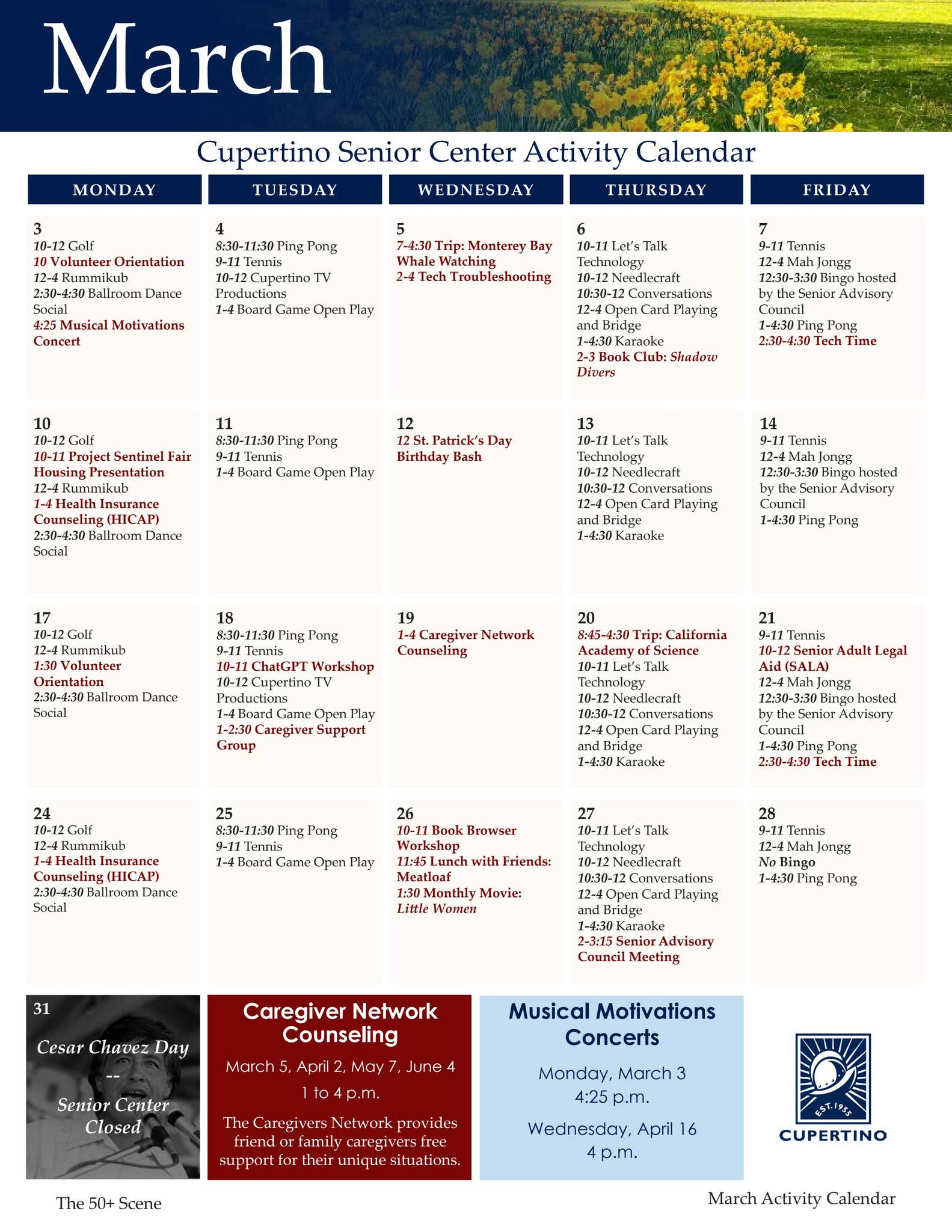Senior Center Calendar March/April 2025 by City of Cupertino Issuu