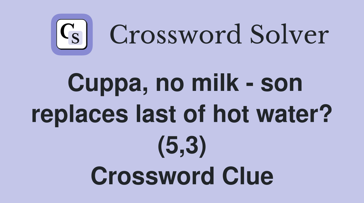 Cuppa no milk son replaces last of hot water? (5 3) Crossword Clue