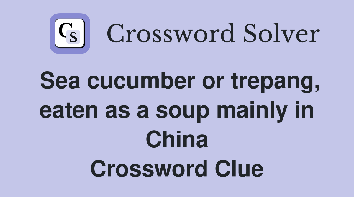 Sea cucumber or trepang eaten as a soup mainly in China Crossword
