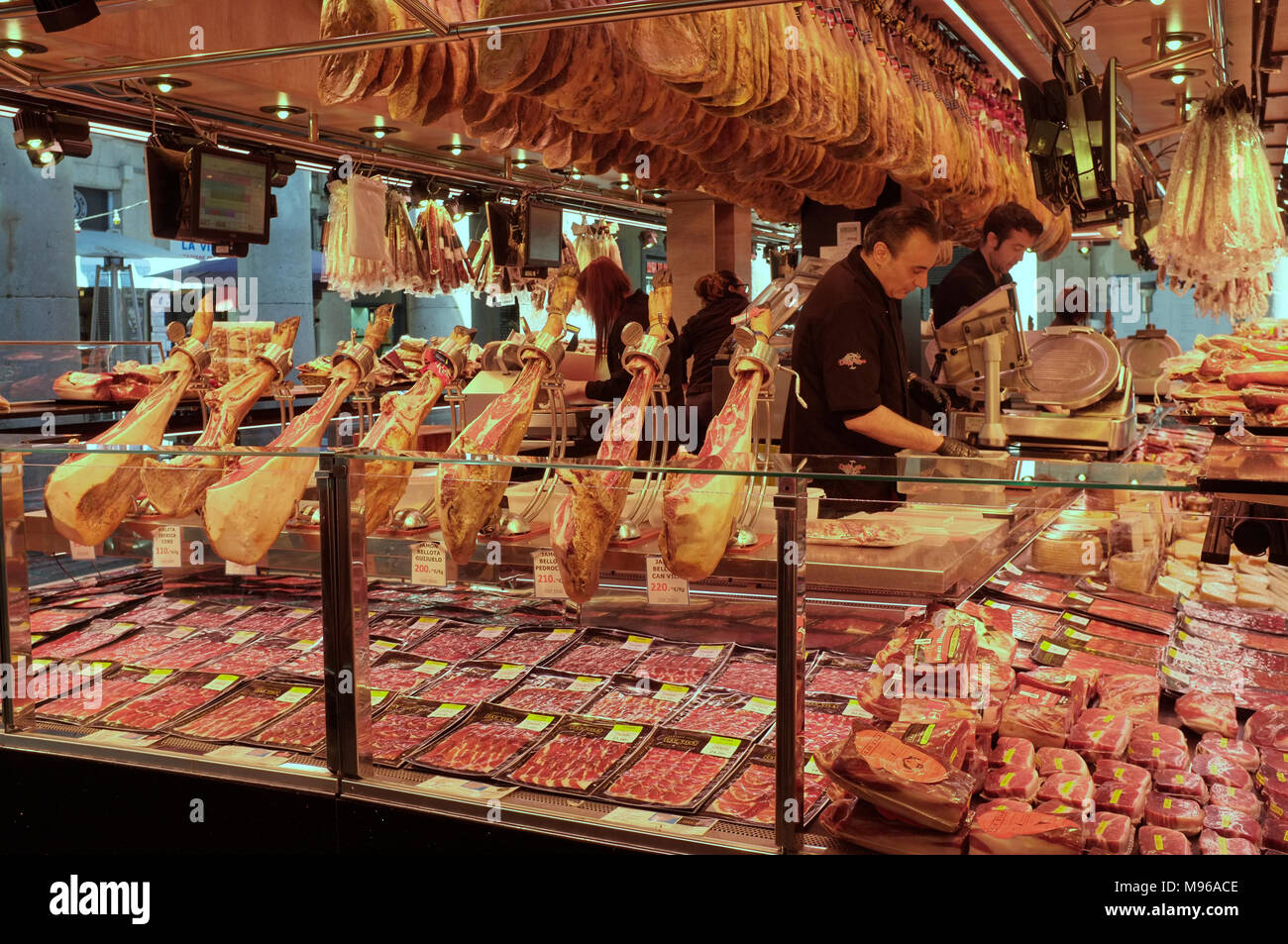 a jamon stall spanish cured ham stall at The La Mercat de Sant Josep