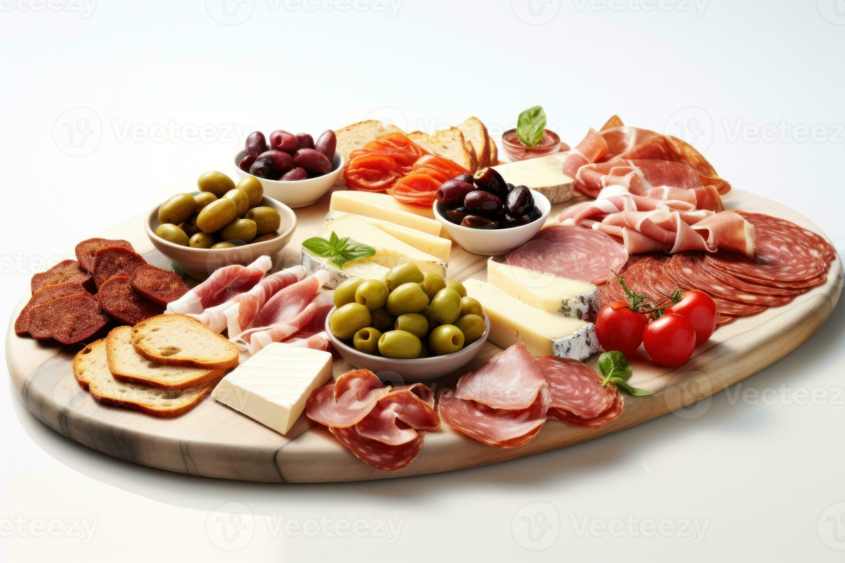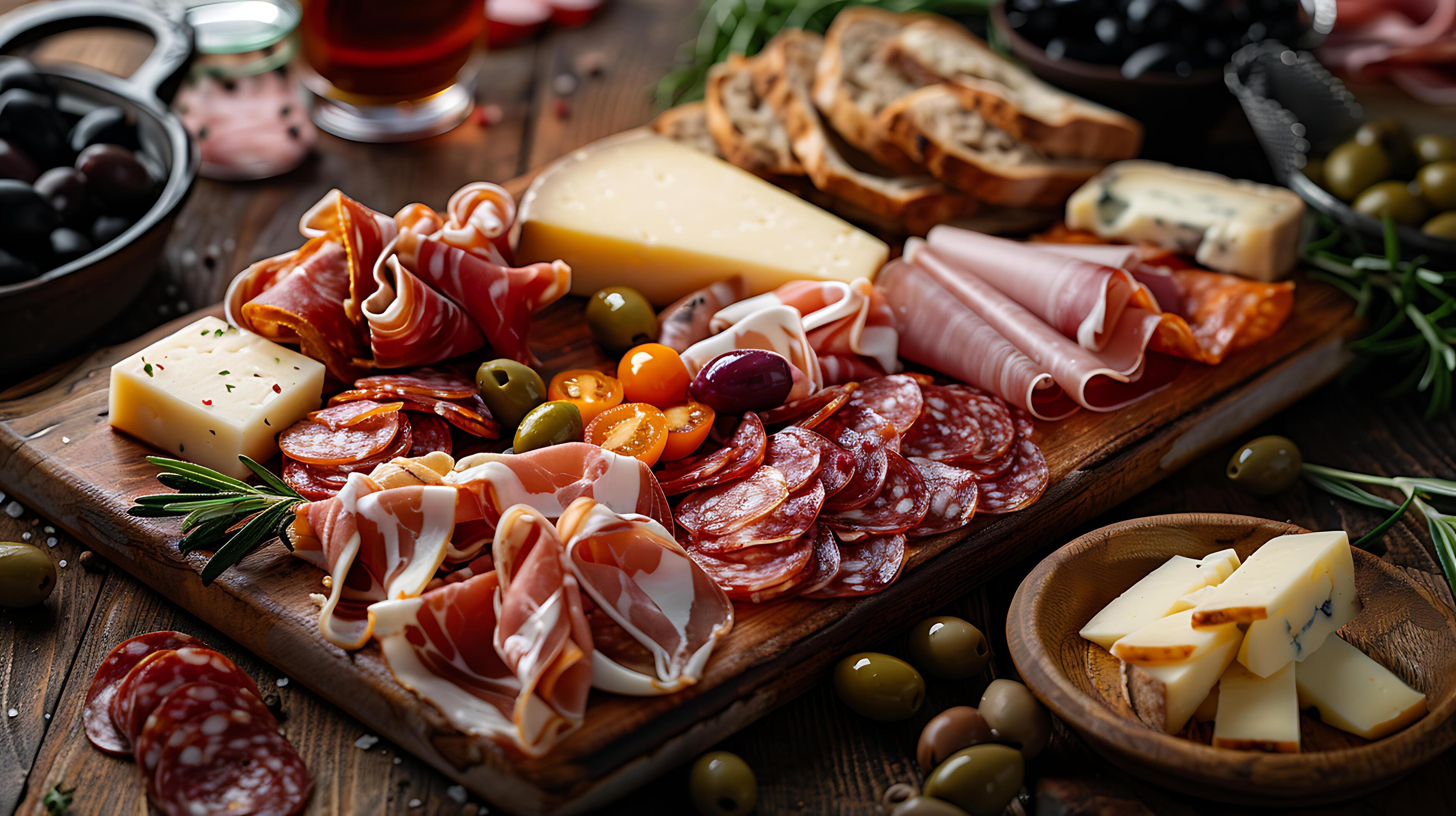 A beautifully arranged antipasto platter with an assortment of cured