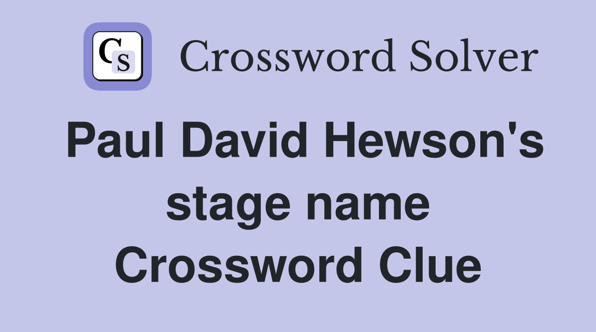 Paul David Hewson #39 s stage name Crossword Clue Answers Crossword Solver