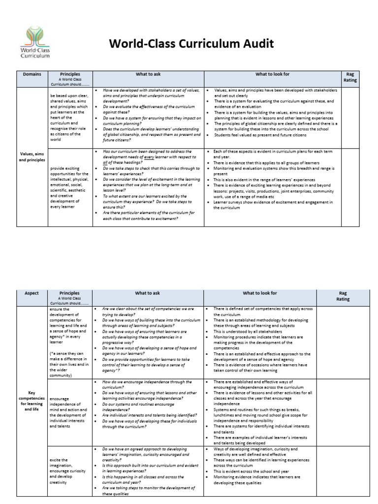 World Class Curriculum Audit Document PDF Curriculum Learning