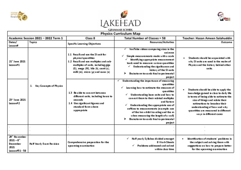 Sample Curriculum Map Learning Plan PDF