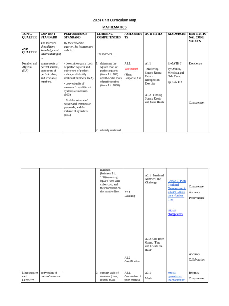 Curriculum Map Template PDF Volume Mathematics