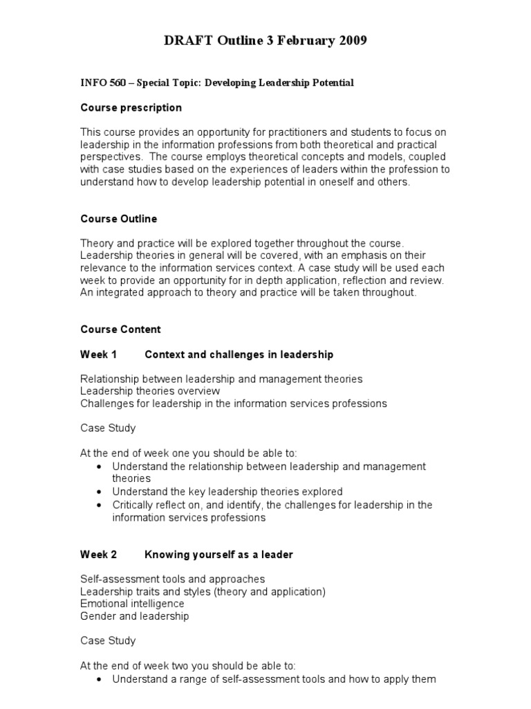 Leadership Course Outline Leadership Leadership Mentoring