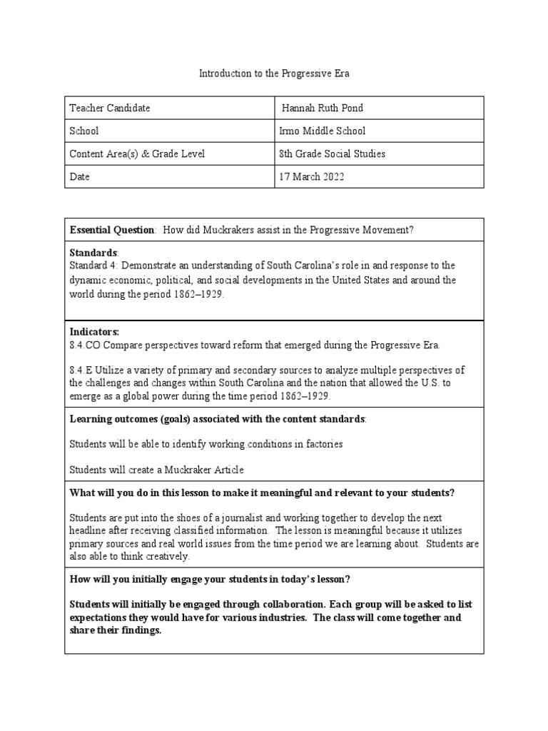 Usc Lesson Plan Outline PDF Educational Assessment Behavior