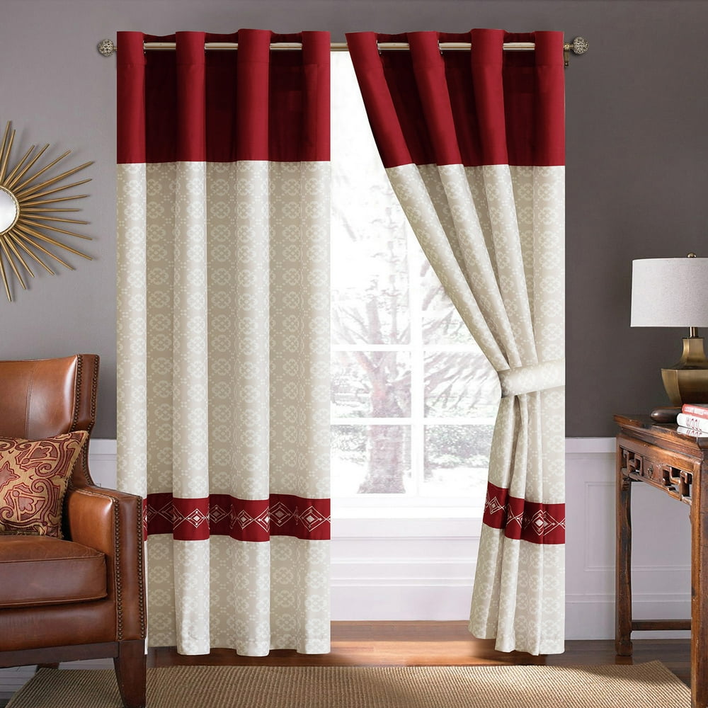 4 Pc Safi Diamond Embroidery Trellis Clover Curtain Set Burgundy Red