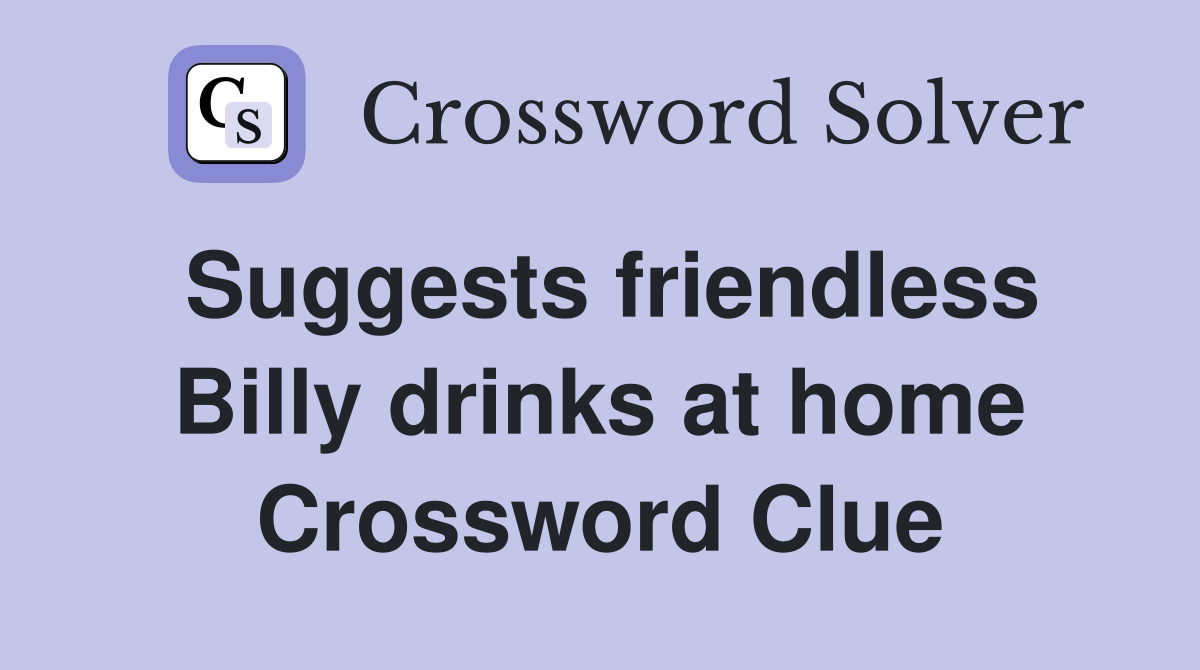 Suggests friendless Billy drinks at home Crossword Clue Answers