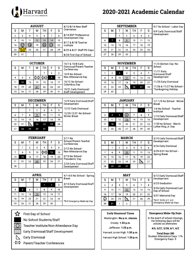 2020 2021 Harvard CUSD 50 Academic Calendar English and Spanish PDF
