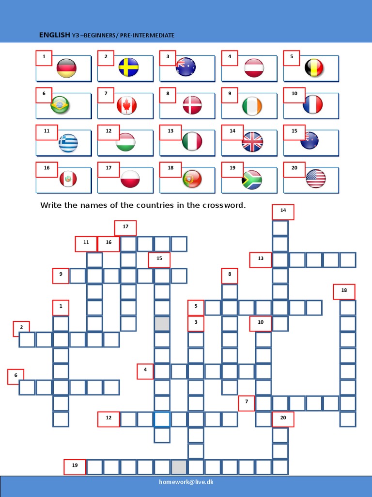 11 Countries Crossword Vocabulary Practice English ESL wor