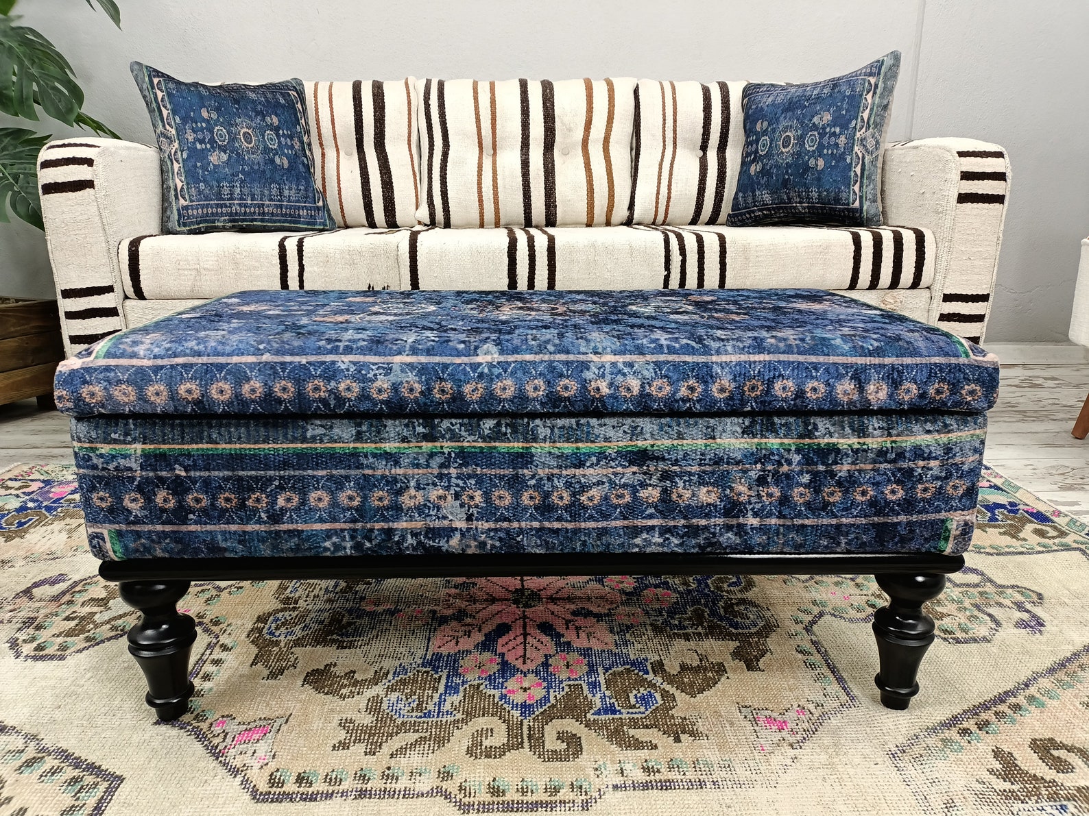 Bench for Entryway Navy Blue Ottoman Storage Chest Cushioned