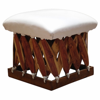 Buy Wooden White Metal Pouffe Pouf Hassock Sethi Cushioned