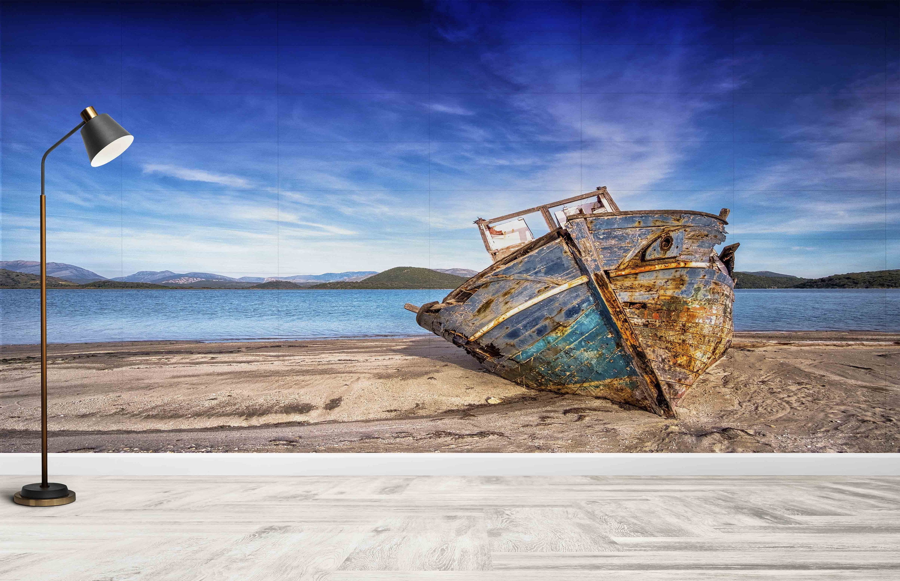 Old Boat On The Beach Wall Art 3d Wallpaper Beach Landscape Wallpaper