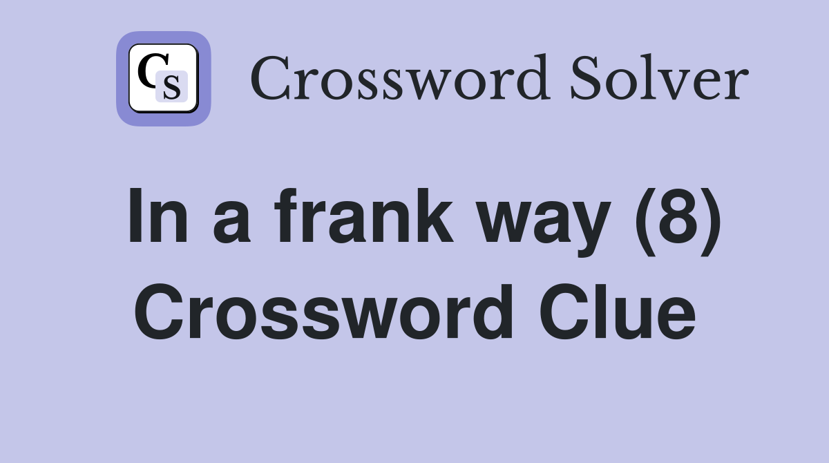 In a frank way (8) Crossword Clue Answers Crossword Solver