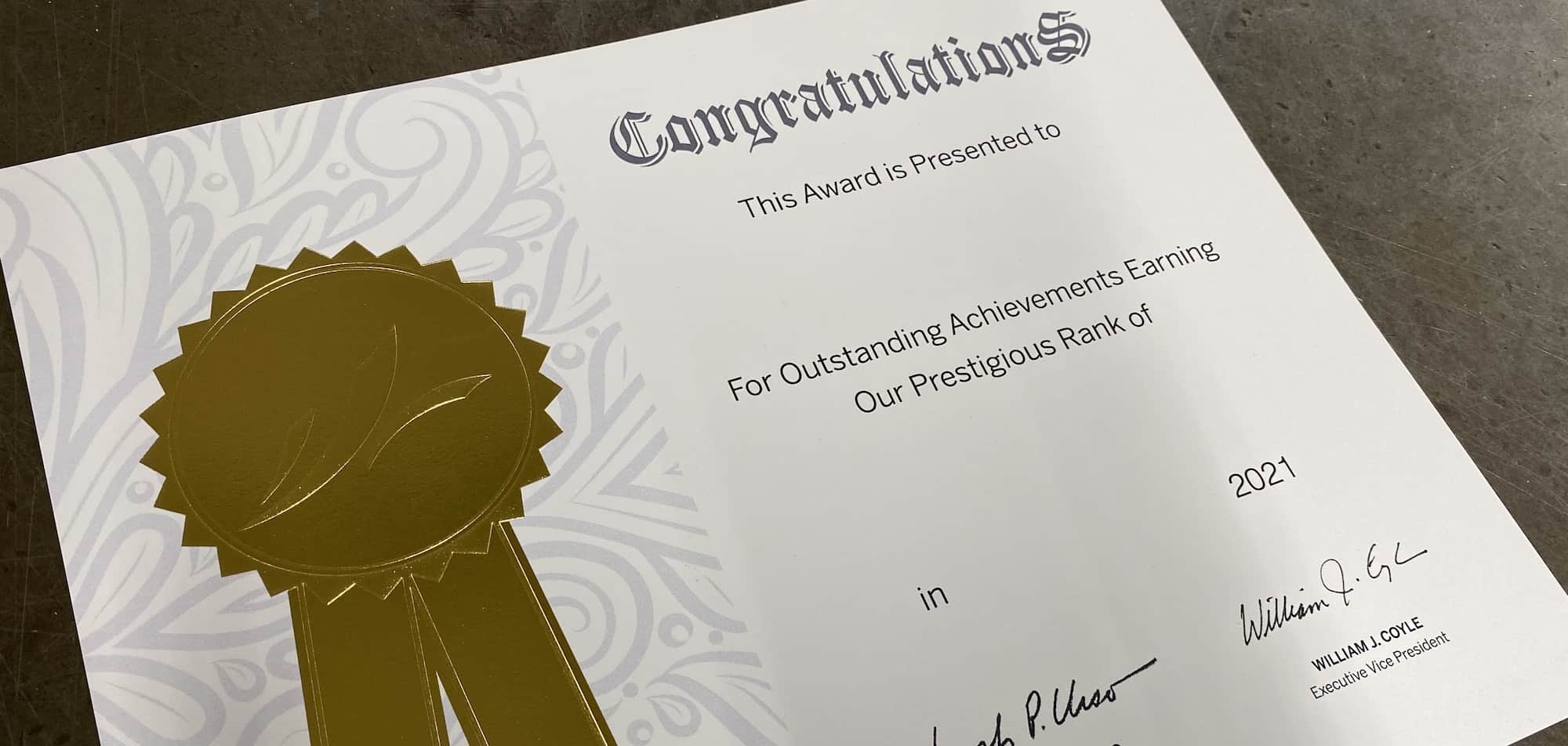 Custom foil certificates create culture of recognition Corcoran Printing