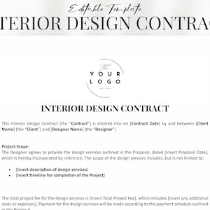 Custom Interior Design Contract Template Professional Etsy