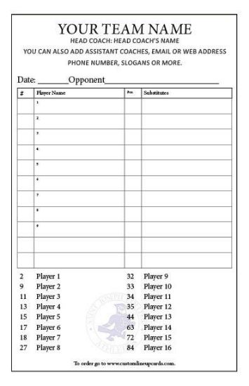 Custom Lineup Card Template