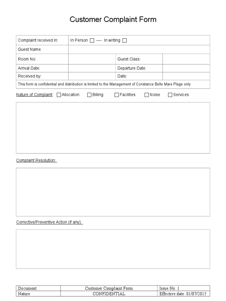 Customer Complaint Form Template