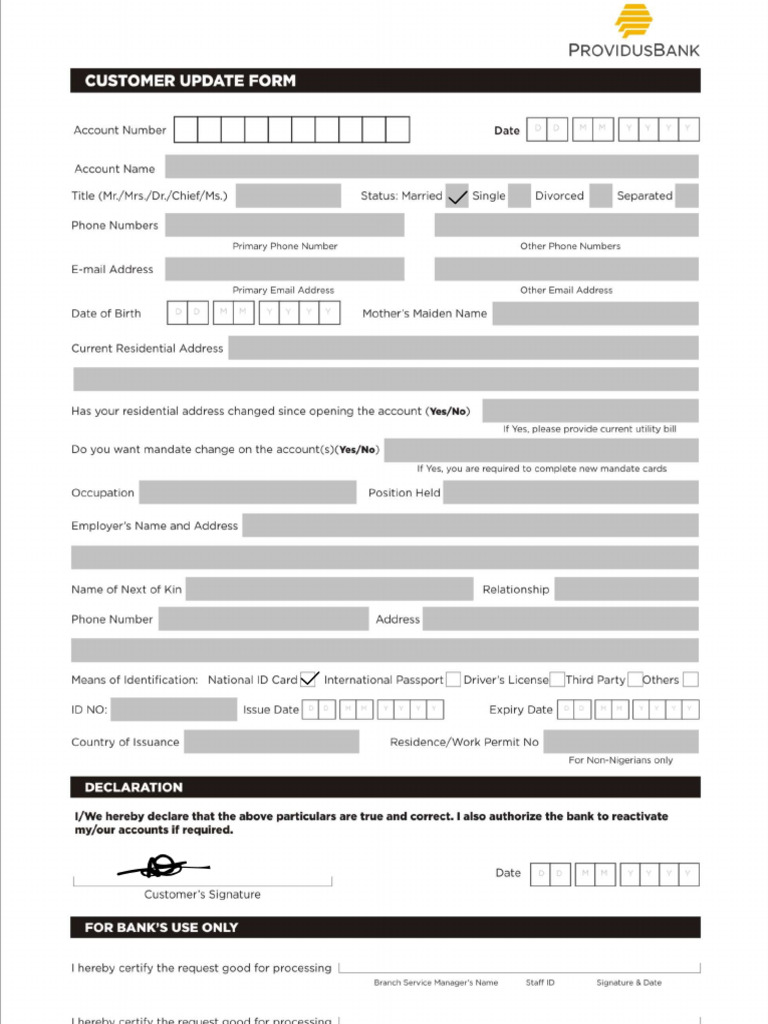Customer Information Update Form PDF Identity Document Official