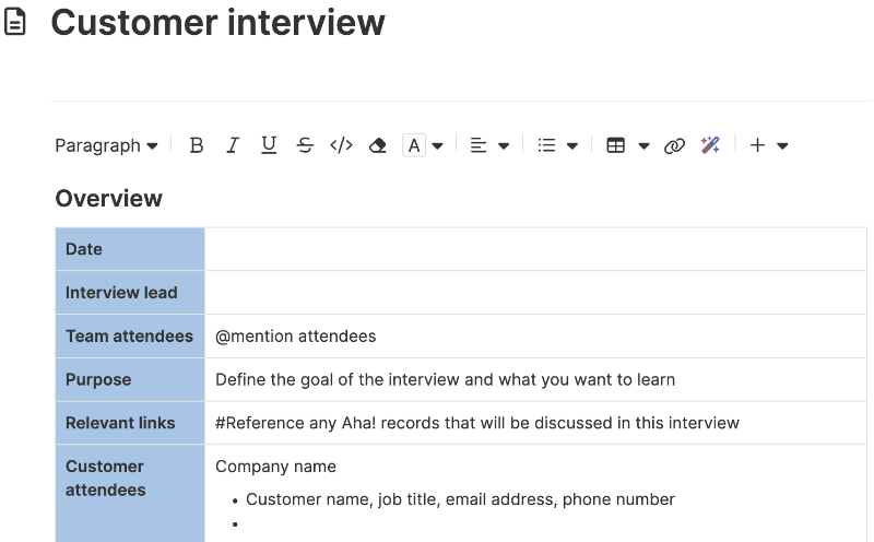 Customer interview Template Create a Customer interview Aha software