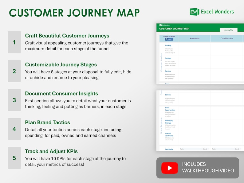 Customer Journey Map Excel Template Excel Wonders Etsy