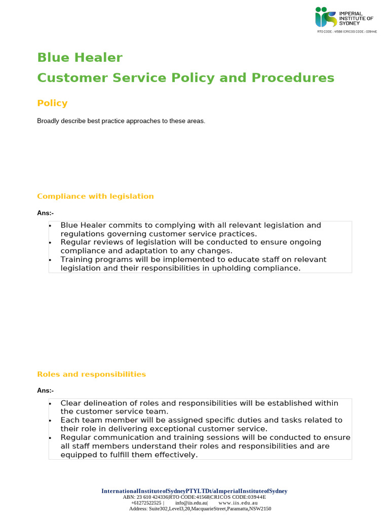 SITXGLC002 Customer Services Policy and Procedures Template PDF