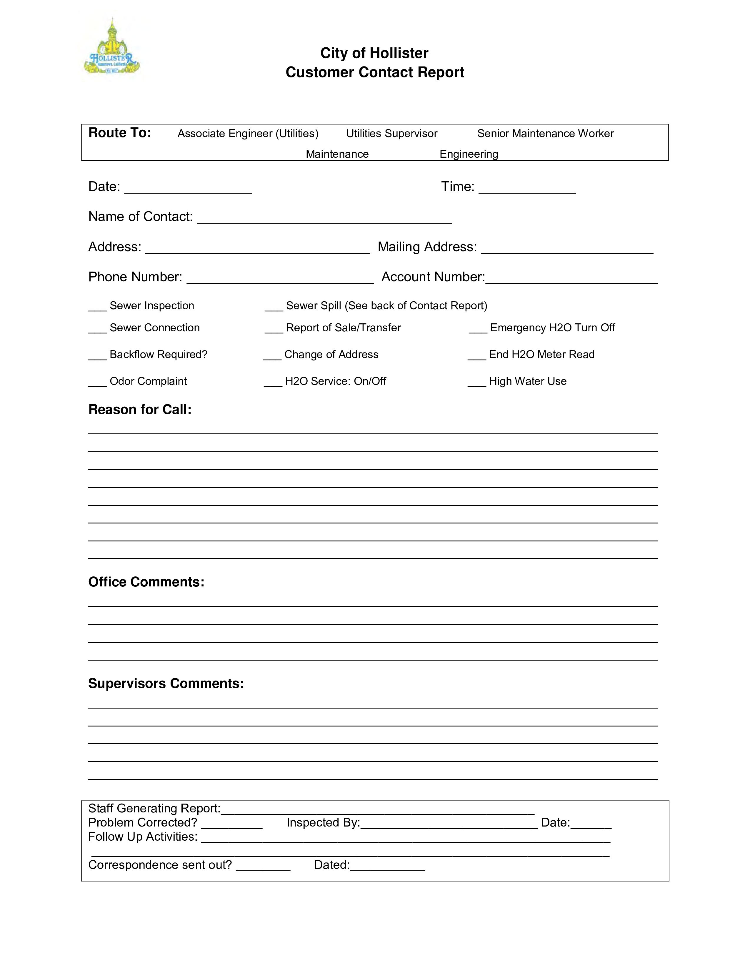 Customer Contact Report Template (7) TEMPLATES EXAMPLE TEMPLATES