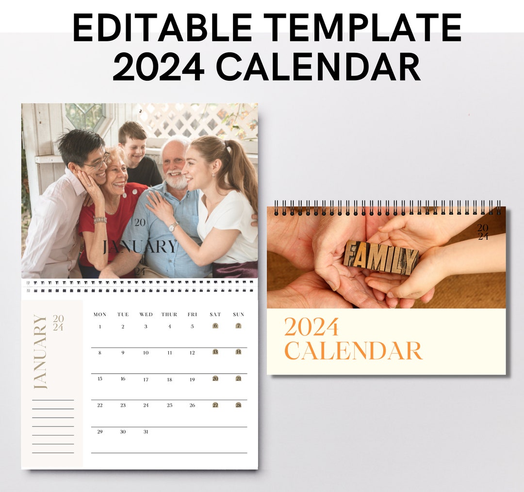 2024 Calendar Editable Template 2 Custom Calendar Template Etsy