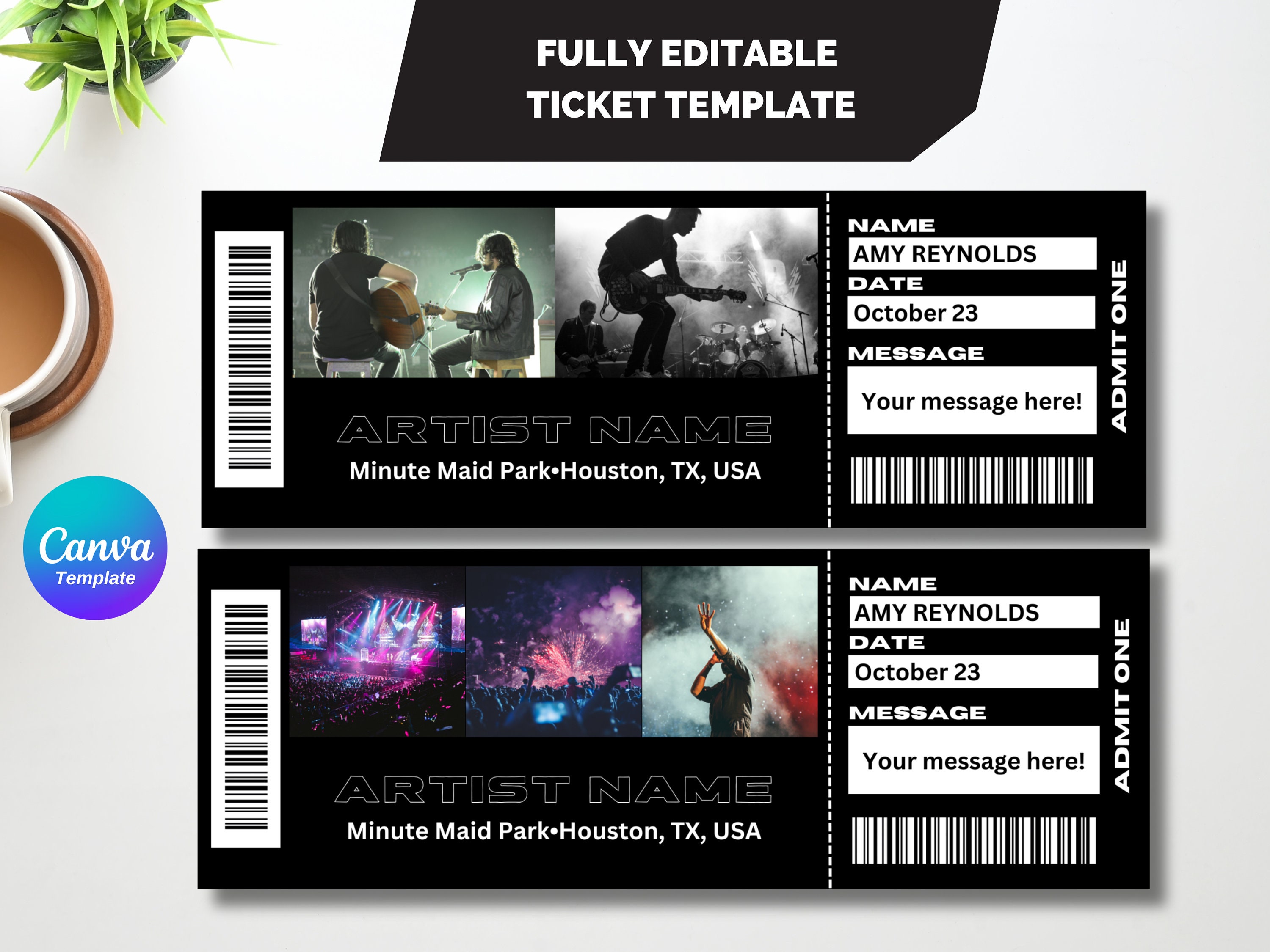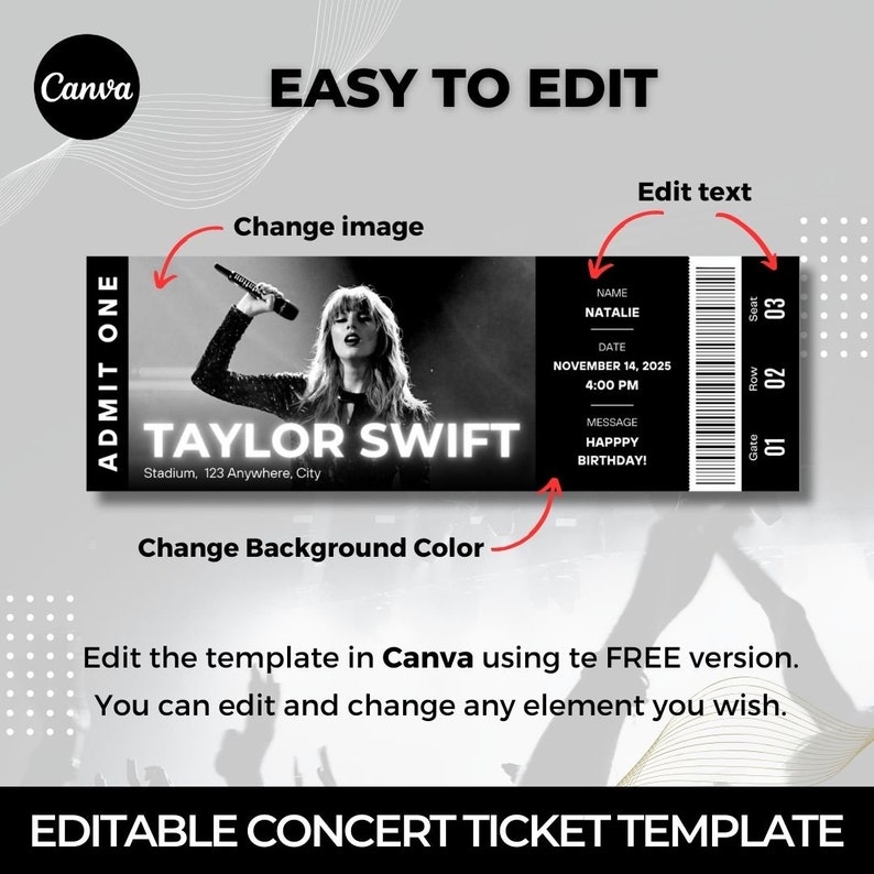 Editable Concert Ticket Template Custom Event Ticket Canva Template