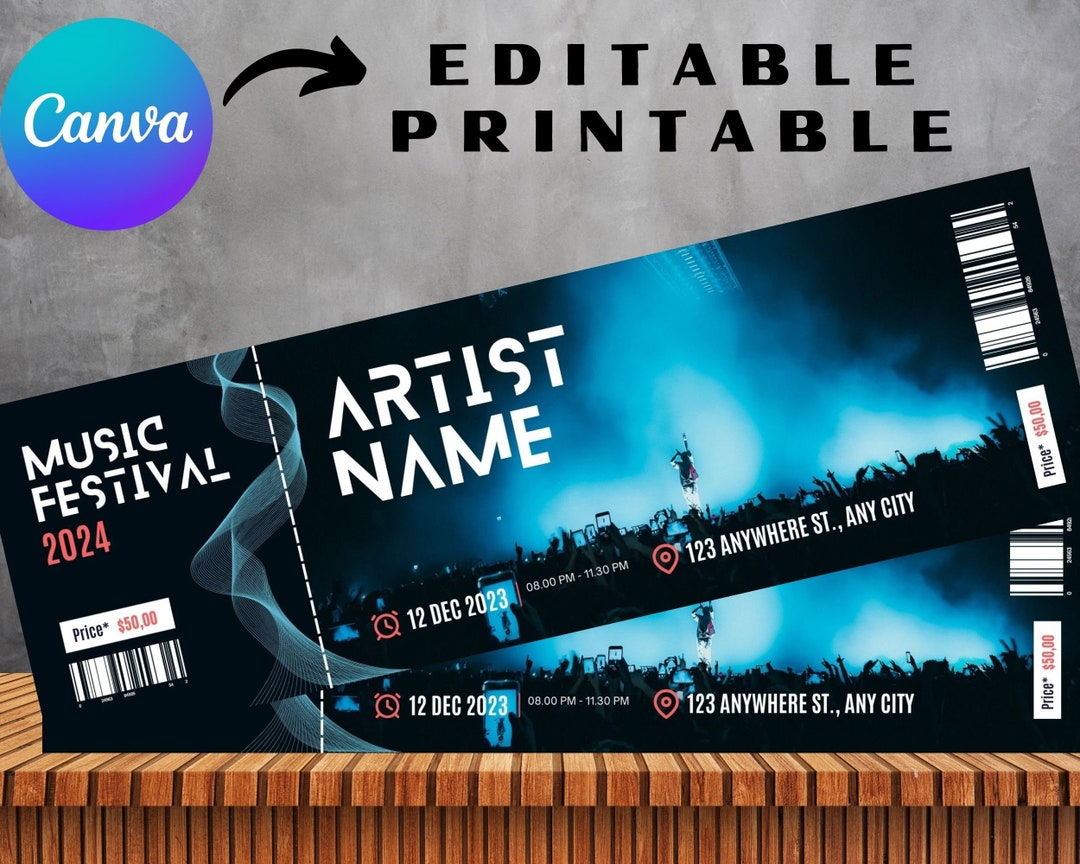 Editable Concert Ticket Template Custom Concert Ticket Gift Etsy