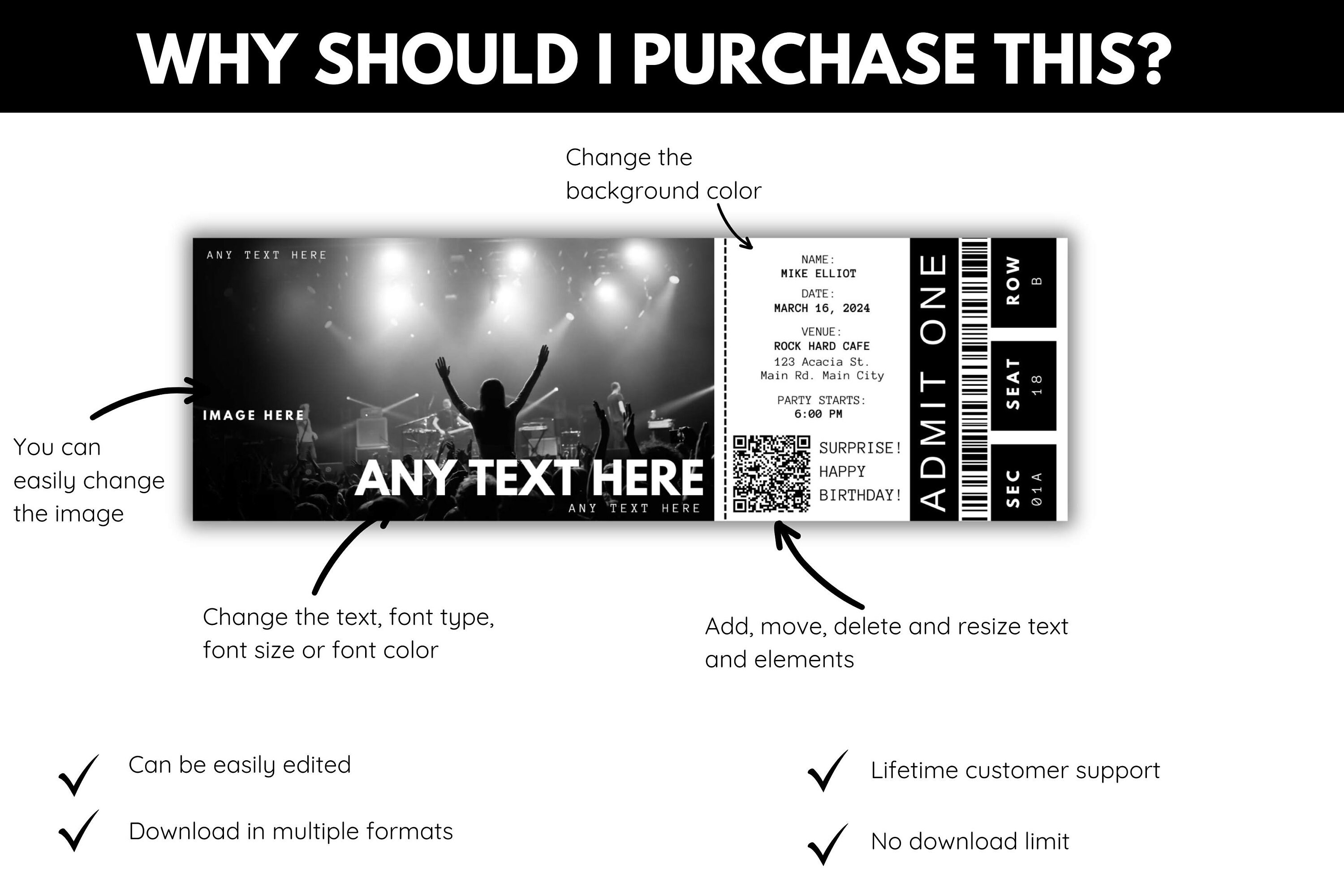 Editable Concert Ticket Template DIY Event Ticket Custom Concert