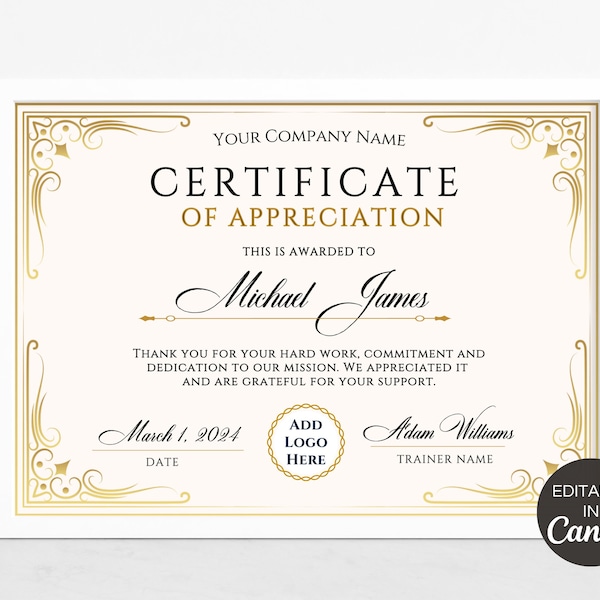 Certificate of Excellence EDITABLE Certificate Corporate Award