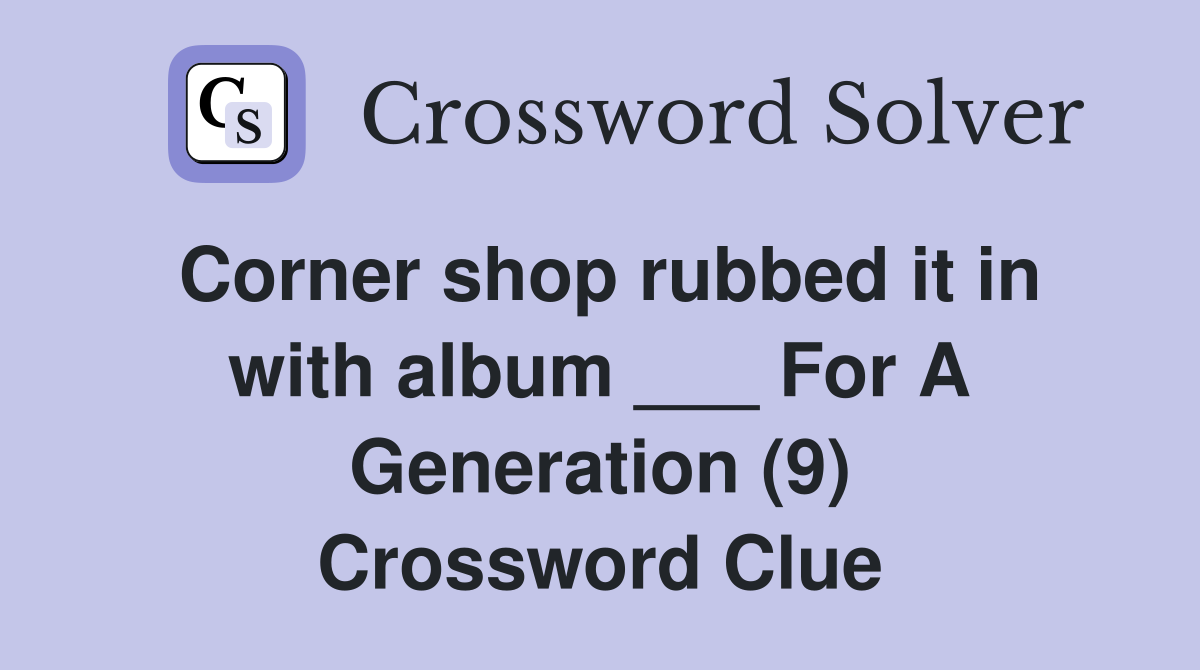 Corner shop rubbed it in with album For A Generation (9