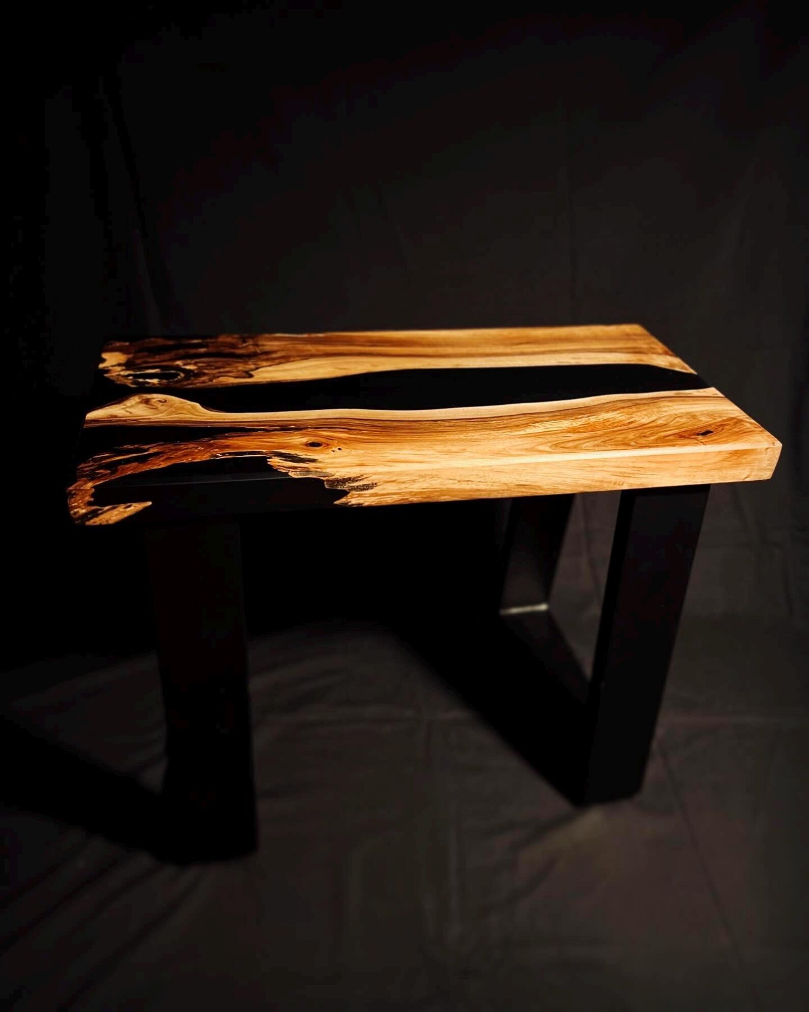 Live Edge Walnut and Epoxy End Table Black Walnut End Table With Black