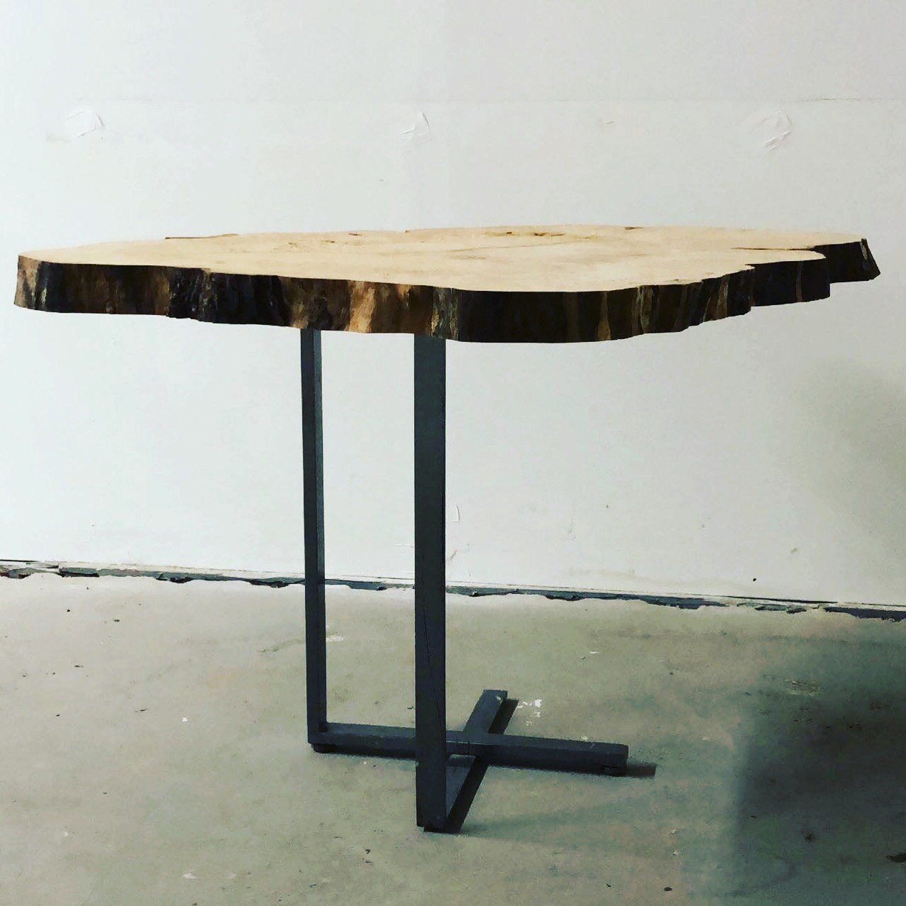 Solid Live Edge Slab Maple Table Wishbone Legs For Sale at 1stDibs