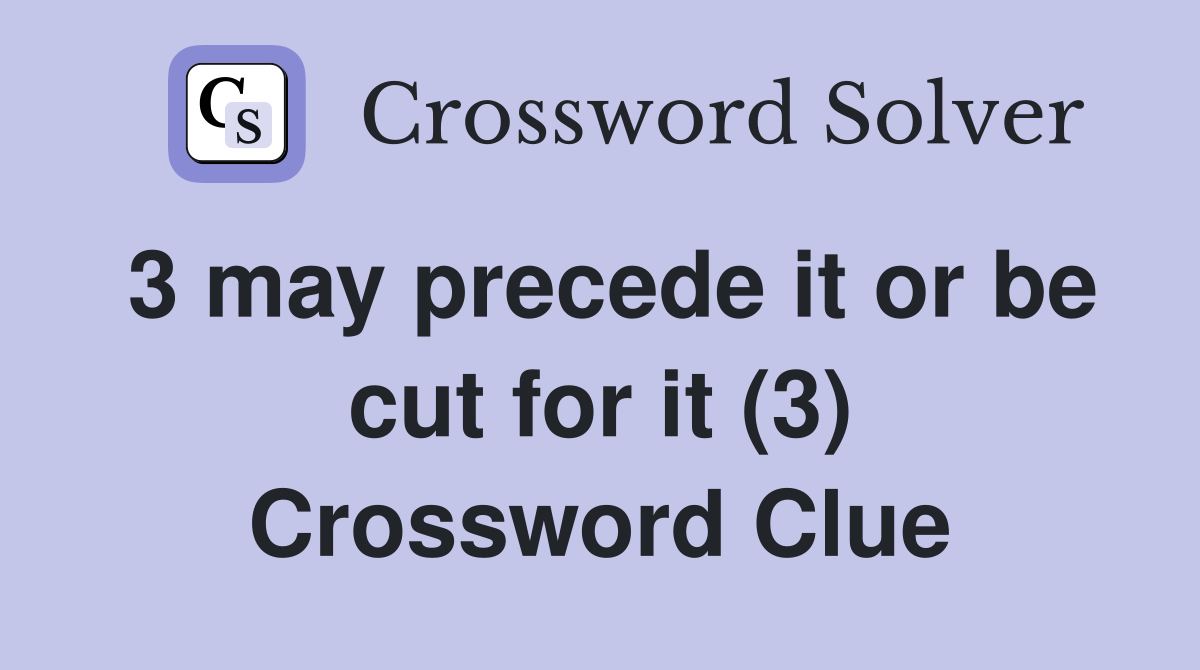 3 may precede it or be cut for it (3) Crossword Clue Answers