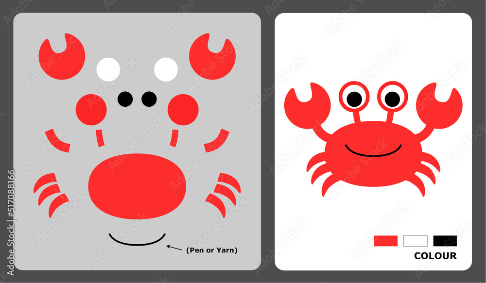 Vetor de Cute crab pattern for kids crafts or paper crafts Vector