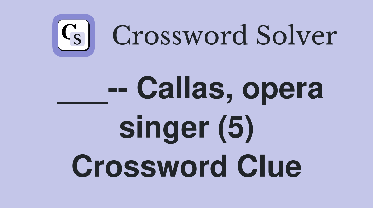 Callas opera singer (5) Crossword Clue Answers Crossword Solver