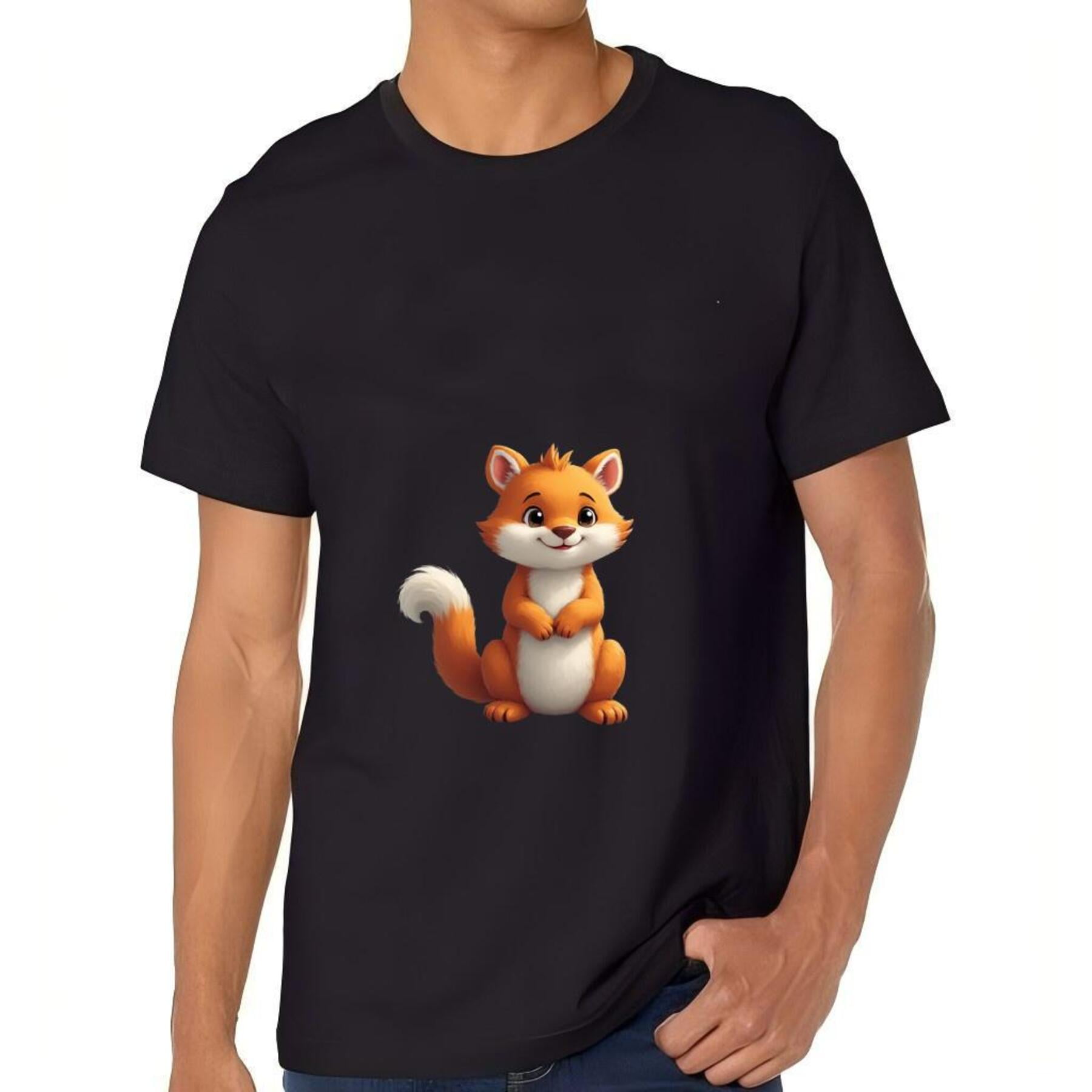 Cute Cartoon Orange Fox Graphic Cotton Short Sleeve T Shirt for Men